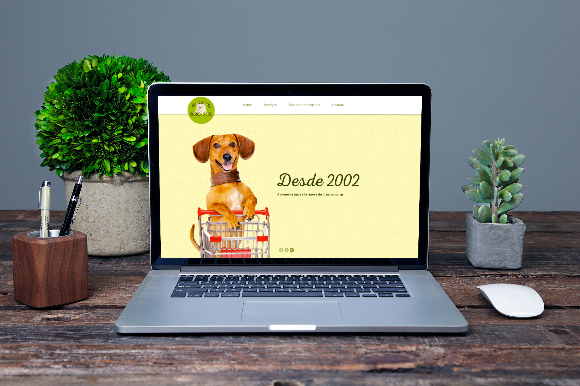 Ao analisarmos a empresa e seus objetivos, percebemos que a forma de comunicar seus produtos e serviços deveria ganhar uma repaginada. Dessa forma, assumimos as redes sociais do pet shop, produzindo conteúdos e artes mais interativas. Tudo foi pensado para que levasse a um maior engajamento do público. Além disso, também desenvolvemos um novo site para o cliente, pensado para ser mais moderno e intuitivo e conter todas as informações necessárias.